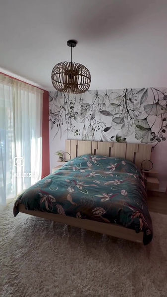 Dans ce projet, l'objectif était de métamorphoser l'ambiance d'une chambre aux murs gris pour répondre aux envies des clients : un espace plus doux et chaleureux. Nous avons opté pour un mur terracotta, réchauffant immédiatement l'atmosphère, accompagné d'un papier peint en tête de lit pour apporter du caractère. Les couleurs claires et les matières naturelles viennent compléter l'ensemble, créant une pièce apaisante et harmonieuse, idéale pour la détente.